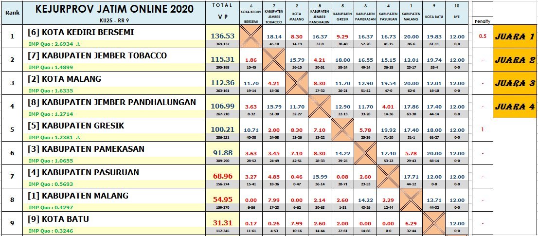 Hasil Akhir Pertandingan KU-25